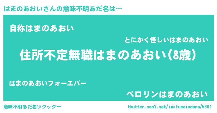 | 男性向けラノベタイトル風あだ名 | 『この素晴らしい世界にはまのあおいを!』 |