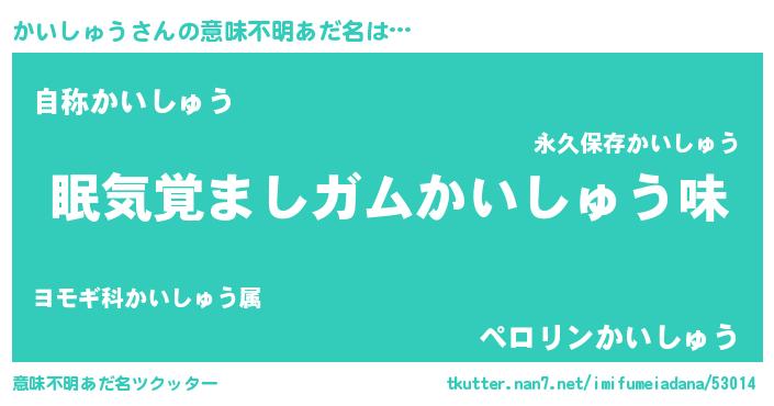 | ヒーロー風カッコイイあだ名 | 『慈愛の使者かいしゅう』『天弓騎士カイ』 |
