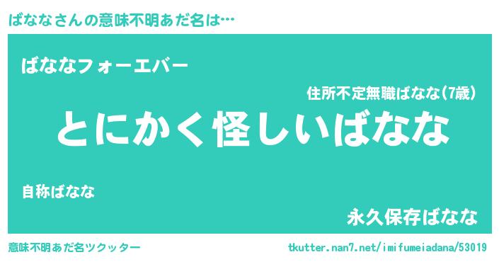 | ヘコむあだ名 | 『ばなっちょ』『つくし』『ばなもー』 |