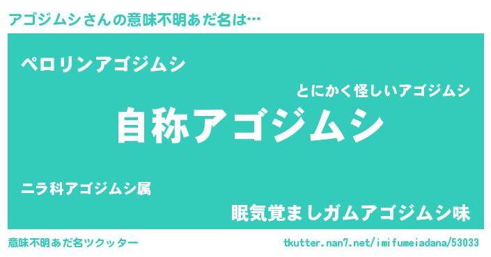 | 女子向けラノベタイトル風あだ名 | 『アゴジムシアンティーク』 |