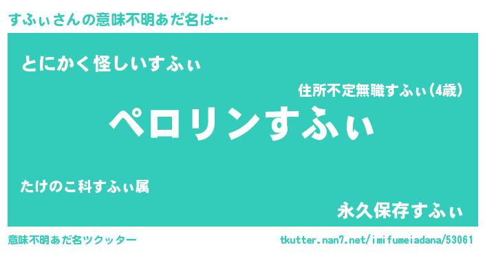 | ヘコむあだ名 | 『すふもー』『すふ太郎』『酢こんぶ』 |