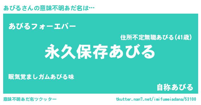 | ヒーロー風カッコイイあだ名 | 『ネオアビル』『ウルトラあびるマン』 |