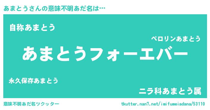 | 女子向けラノベタイトル風あだ名 | 『あまとうの雑貨屋さん』『闇のあまとう』 |