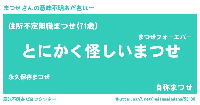 | 女子向けラノベタイトル風あだ名 | 『まつせの卵を拾いまして』『闇のまつせ』 |