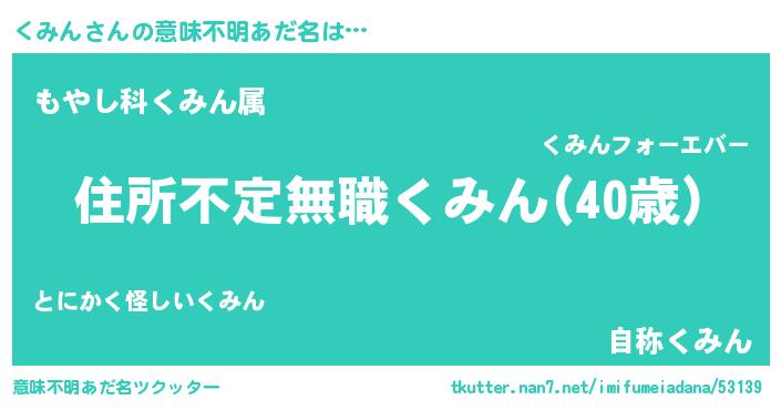 | 男性向けラノベタイトル風あだ名 | 『この素晴らしい世界にくみんを!』 |