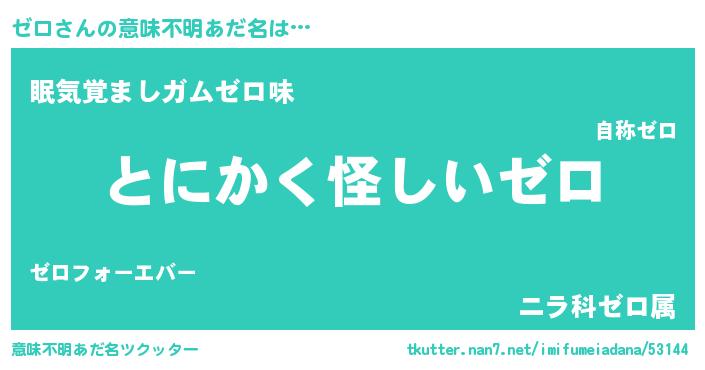 | 男性向けラノベタイトル風あだ名 | 『ゼロの嫁は女の子じゃないと思った?』 |