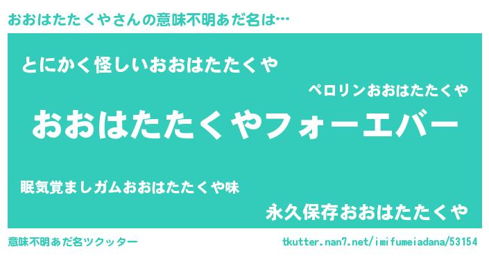 | ファンタジー風あだ名 | 『エターナルオオハタタクヤー』 |