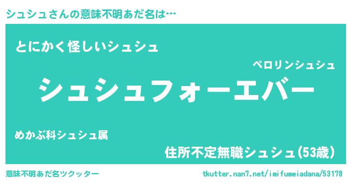 | ヒーロー風カッコイイあだ名 | 『ウルトラシュシュマン』『暗黒騎士シュ』 |