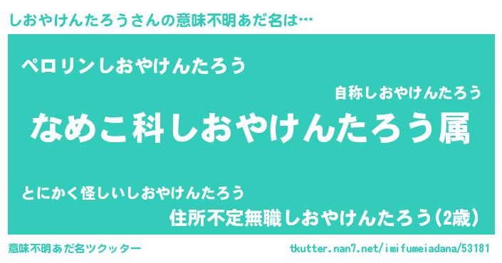 | 男性向けラノベタイトル風あだ名 | 『はたらくしおやけんたろうさま!』 |