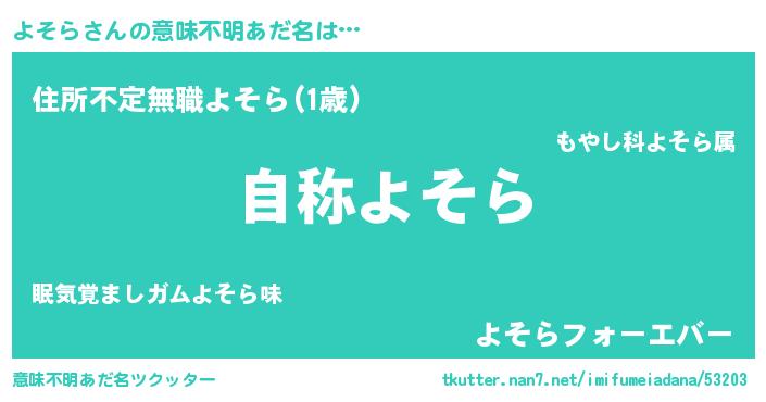 | 欧米人風あだ名 | 『ケンブリッジよそら』 |