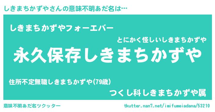 | 男性向けラノベタイトル風あだ名 | 『しきまちかずやという概念が存在しない退屈な世界 』 |