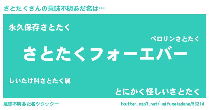 | ファンタジー風あだ名 | 『エターナルサトタクー』『サトフェル』 |