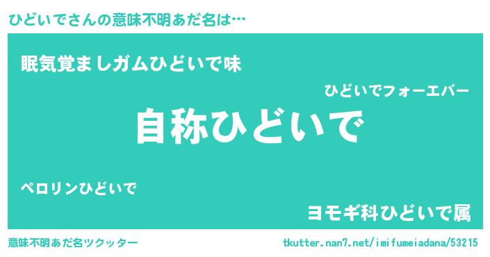 | ヘコむあだ名 | 『つくし』『ひどにー』『ひどお』 |