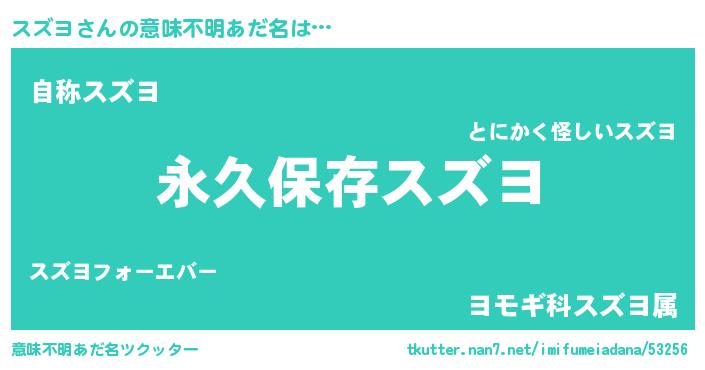 | 男性向けラノベタイトル風あだ名 | 『スズヨという概念が存在しない退屈な世界 』 |