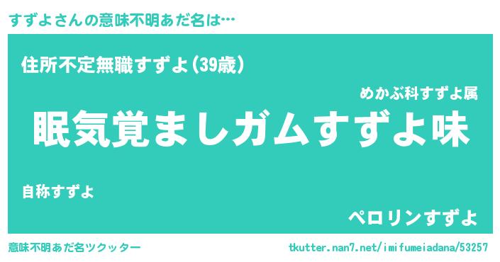 | ヒーロー風カッコイイあだ名 | 『慈愛の使者すずよ』『仮面スズダー』 |