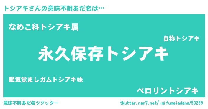 | 胡散臭い通販商品みたいなあだ名 | 『来世でも幸せになれる健康食品…その名も「トシアキ」』 |