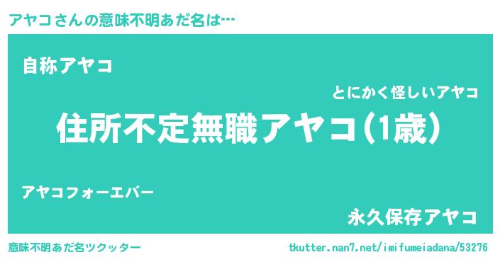 | ヘコむあだ名 | 『アヤコ(小並感)』『アヤお』 |