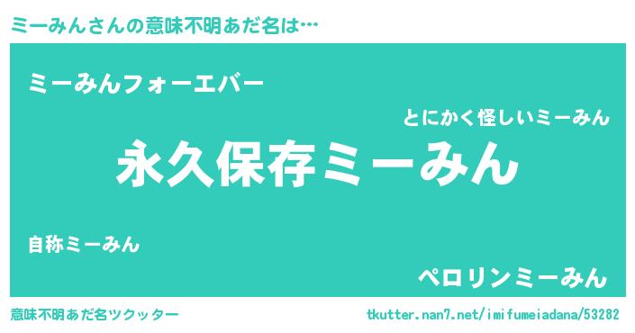 | ヒーロー風カッコイイあだ名 | 『ネオミーミン』『ウルトラミーみんマン』 |