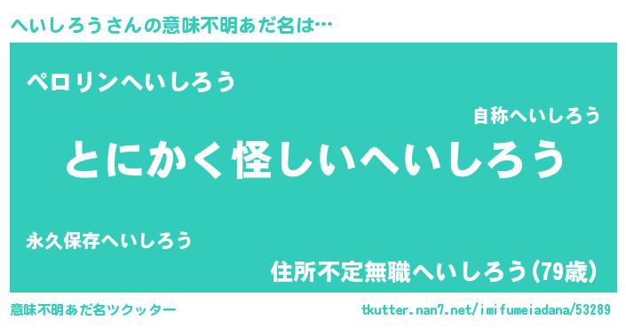 | 女子向けラノベタイトル風あだ名 | 『へいしろう様がみてる』 |