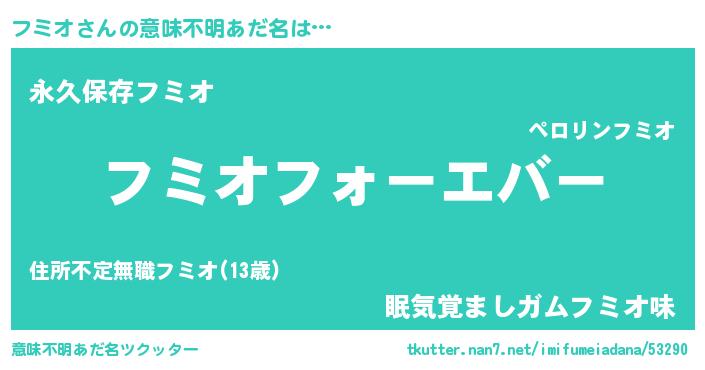 | 男性向けラノベタイトル風あだ名 | 『フミオに滅ぼされるだけの簡単なお仕事です』 |
