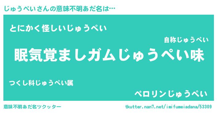 | 女子向けラノベタイトル風あだ名 | 『死神じゅうぺいの再婚』 |