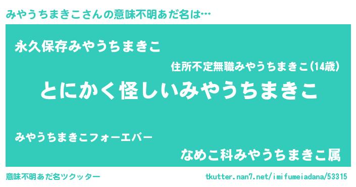 | ポケモン風あだ名 | 『ヒミヤウチマキコ』『ゼニミヤ』 |