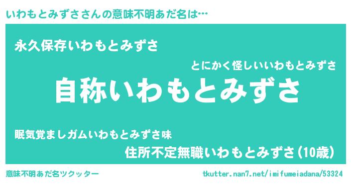 | 肩書あだ名 | 『いわもとみずさ閣下』 |
