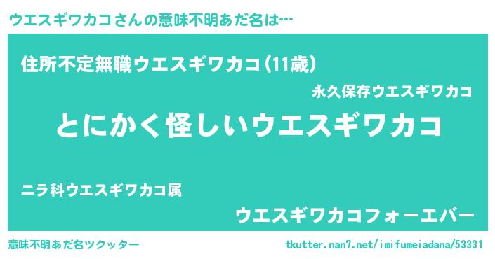 | 欧米人風あだ名 | 『ウサインウエスギワカコ』 |