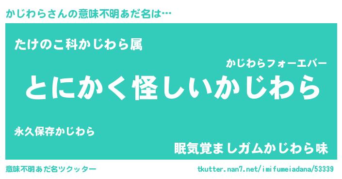 | 胡散臭い通販商品みたいなあだ名 | 『信頼と実績のサプリメント…その名も「かじわら」』 |