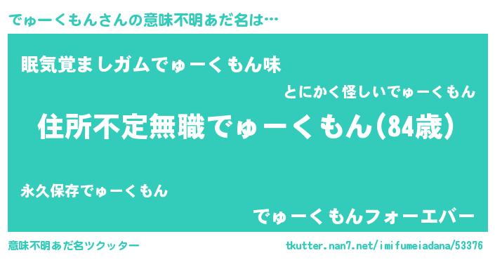 | 胡散臭い通販商品みたいなあだ名 | 『あなたにだけ特別に提供する世界で10本だけ現存している希少なブランデー…その名も「でゅーくもん」』 |