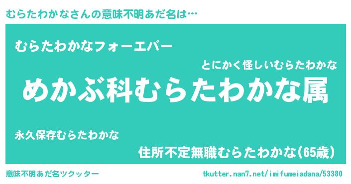 | 伝説のあだ名 | 『秘められし陰陽師むらたわかな』 |