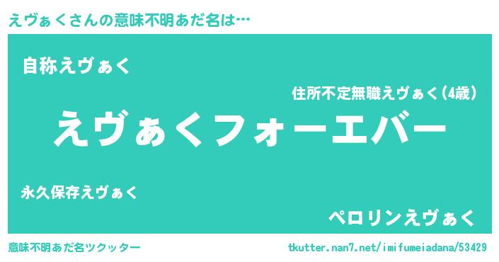 | ファンタジー風あだ名 | 『エターナルエヴァクー』『ゼエヴトゥ』 |
