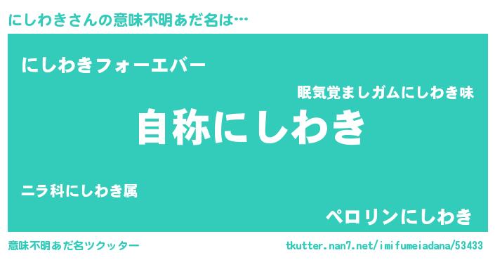 | 男性向けラノベタイトル風あだ名 | 『魔法科高校のにしわき』 |