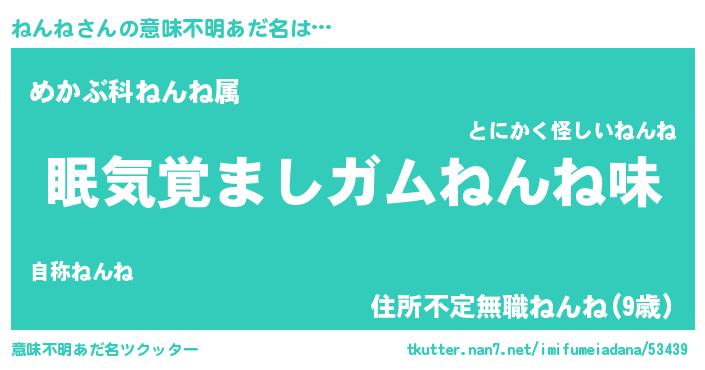 | ヒーロー風カッコイイあだ名 | 『天空の使者ねんね』『仮面ネンダー』 |