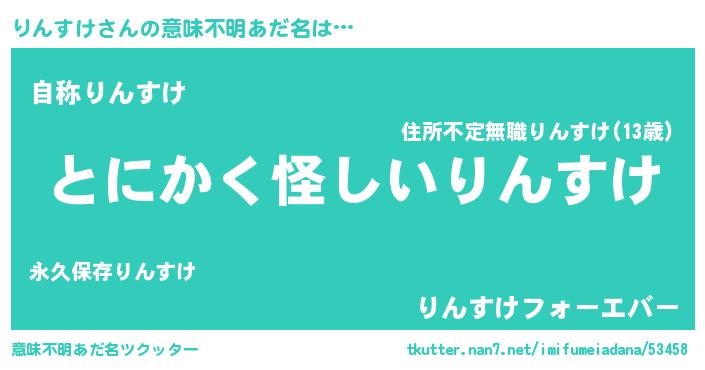 | 胡散臭い通販商品みたいなあだ名 | 『信頼と実績のサプリメント…その名も「りんすけ」』 |