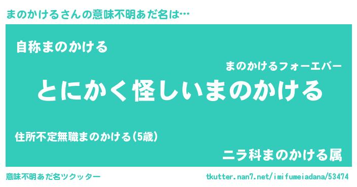 | 女子向けラノベタイトル風あだ名 | 『まのかけるの卵を拾いまして』 |