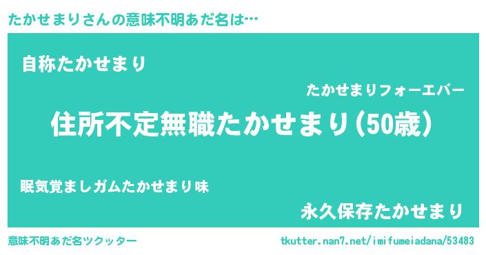 | ヒーロー風カッコイイあだ名 | 『仮面タカダー』『究極戦士タカセマリ』 |