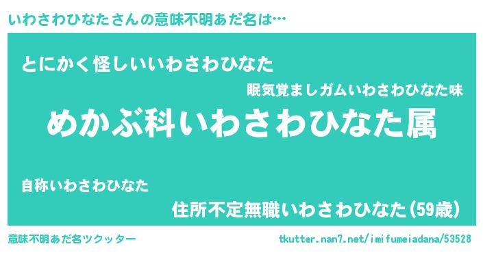 | 胡散臭い通販商品みたいなあだ名 | 『信頼と実績のサプリメント…その名も「いわさわひなた」』 |