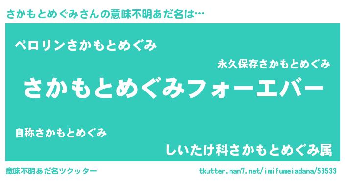 | ファンタジー風あだ名 | 『エターナルサカモトメグミー』 |
