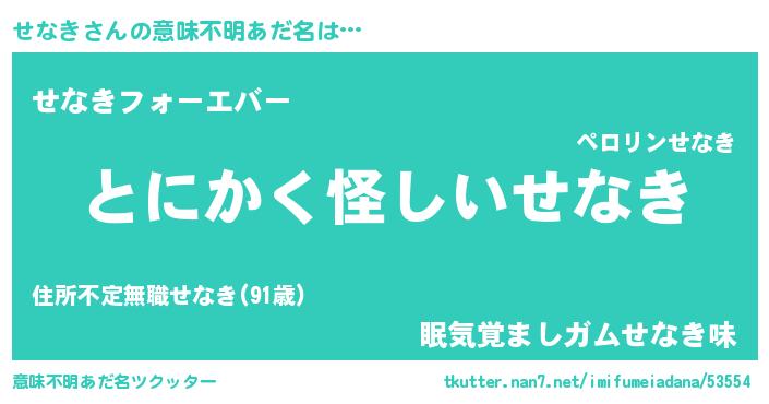 | 女子向けラノベタイトル風あだ名 | 『横柄せなきと宰相陛下』『せなき恋絵巻』 |