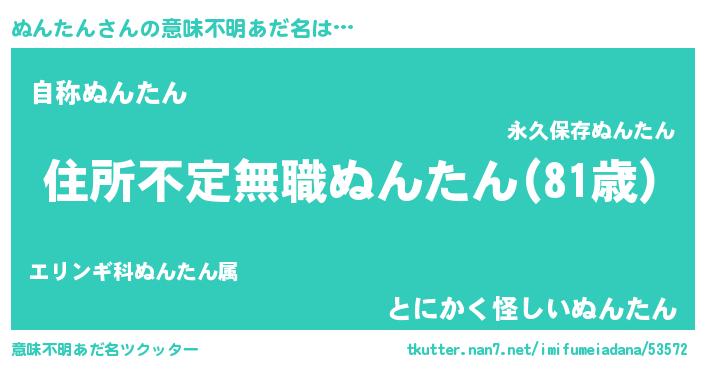| ヒーロー風カッコイイあだ名 | 『仮面ヌンダー』『超時空戦士ヌンタン』 |