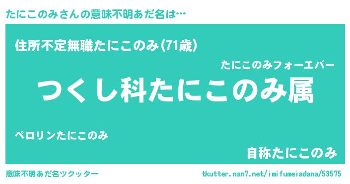 | 男性向けラノベタイトル風あだ名 | 『たにこのみ~年齢イコール彼女いない歴の魔法使い~』 |