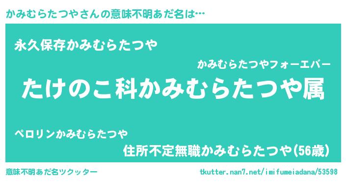 | 胡散臭い通販商品みたいなあだ名 | 『来世でも幸せになれる健康食品…その名も「かみむらたつや」』 |