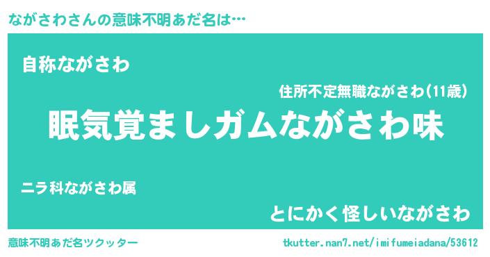 | 男性向けラノベタイトル風あだ名 | 『ノーゲーム・ノーナガサワ』 |