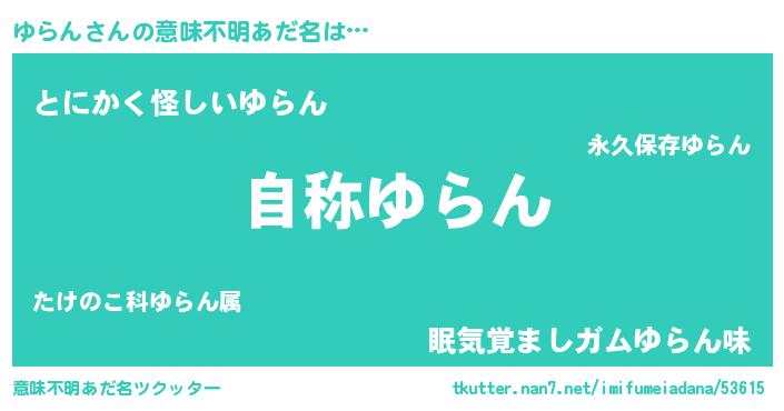 | 欧米人風あだ名 | 『ケンブリッジゆらん』『ウサインゆらん』 |