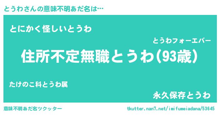 | ヘコむあだ名 | 『とうぷりん』『とうわ(遠い目)』 |