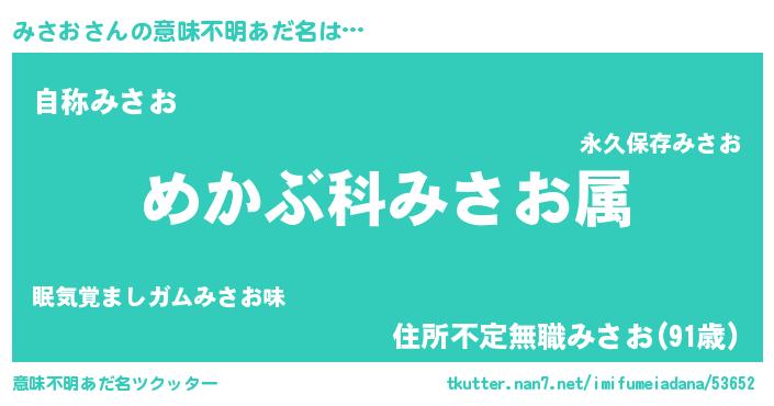 | ヒーロー風カッコイイあだ名 | 『ウルトラ戦士ミサオ』『仮面ミサダー』 |