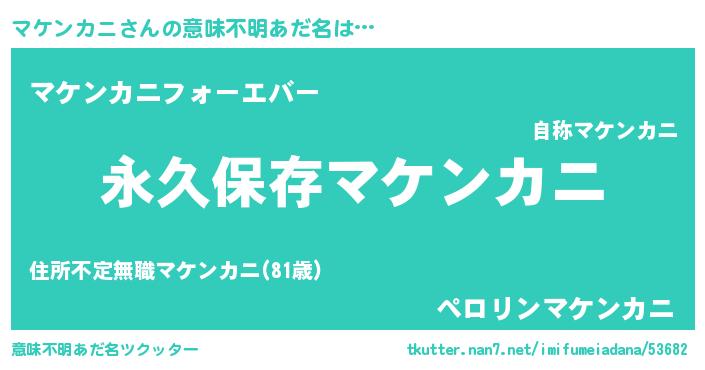 | ヒーロー風カッコイイあだ名 | 『ネオマケンカニ』『スーパーマケンカニ』 |