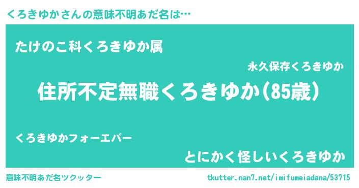 | 欧米人風あだ名 | 『くろきゆか・ステッグマイヤー』 |