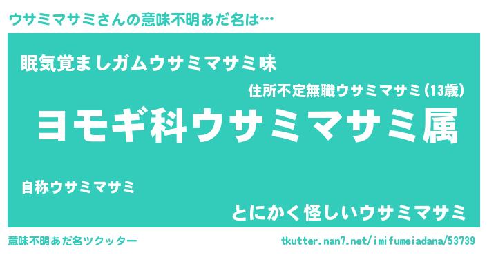 | 男性向けラノベタイトル風あだ名 | 『うちのウサミマサミが世界を掌握している!』 |